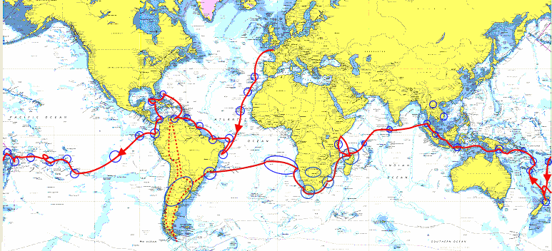 l'Atlantique, le Pacifique et l'Indien, avant de revenir dans l'Atlantique sud qu'ils ont retraversé vers l'Amérique du Sud et Rio de Janeiro en janvier 2011.