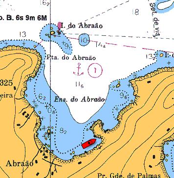 C'est l'anse dans laquelle se trouve Abraao; le principal village de l'ile. Ancien village de pêcheurs, c'est aujourd'hui le centre de l'activité touristique à l'est de la baie. C'est une agglomération maintenant constituée principalement de pousadas et d'agences de tours opérateurs. Devant le village et sa plage, une flotte conséquente de bateaux de promenade mouille sur ses corps morts. Leur activité entretient un trafic important qui culmine en milieu de matinée et fin d'après- midi. Par contre, c'est le seul trafic de la baie, que les bateaux de plaisance à moteur fréquentent peu. On y est donc convenablement tranquille, surtout les week- end, quand c'est intenable dans les "mouillages de rêve" de la zone.