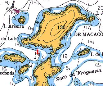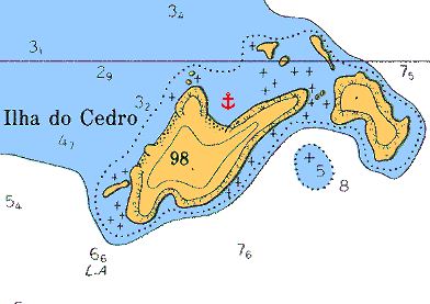 Pas de problème particulier pour arriver. On peut passer sans problème à terre de l'ilha das palmas, qui se trouve sur la route en venant de l'est, à l'entrée de l'anse.. |