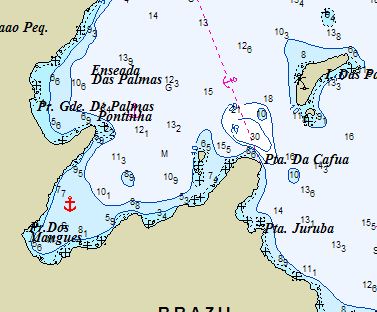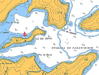 Informations d' accès | Arriver au 22°59.5' S: 44°26.2'W. Pas de problème pour l'anse elle-même. Par contre, sur le chemin, au nord est de l'anse, on trouve plusieurs basses, émergeantes ou non, qu'il convient d'éviter. Elles figurent toutes au bon endroit sur la carte. |