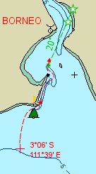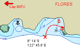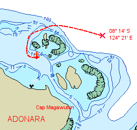 RAS. Atterrissage du mouillage: {1° 42 S :108° 44 E} |