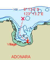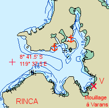 Le seul danger est la pointe SW du platier de corail que l'on voit sur la carte. Une fois qu'il est localisé, le suivre par le S, jusqu'à pouvoir remonter vers le N, assez près de la côte (elle même débordée par des hauts fonds.) Le mouillage est évident par bonne visibilité. Par mauvaise, il vaut peut être mieux s'abstenir... |