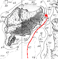 l'on connaisse. Aucun souci, une fois arrivé là. On mouille devant la plage du village situé sur l'île, dans 6 à 7 mètres d'eau. Evidemment il y a pas mal de courant de marée et on évite avec. |