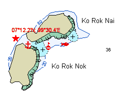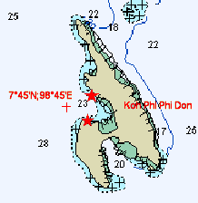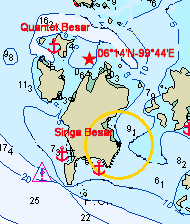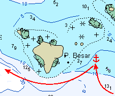 de mètres, sur fond de sable. Bon mouillage de mousson de Nord Est.